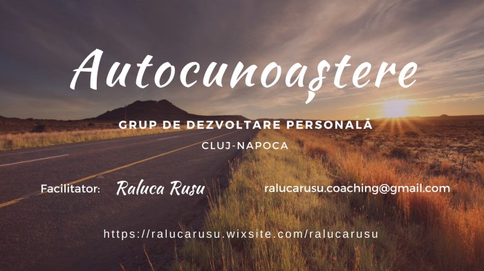 Dar autocunoașterea presupune un proces care cere timp și resurse, pe care poate nu toți își permit să le ofere. Din acest motiv, vin în întâmpinarea celor interesați cu un program intensiv și structurat de dezvoltare personală, care are ca scop cunoașterea de sine. Acesta se va derula sub forma unui grup de lucru, cu întâlniri săptămânale.