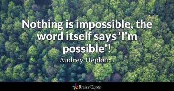 Eu, de exemplu, credeam că nu o să reușesc niciodată să public o carte. Am făcut-o! Credeam că este imposibilă relația pe care o am acum cu soțul meu. O am! Credeam că niciodată nu o să am cabinetul meu. Îl am! Și lista poate continua… deoarece am făcut să fie posibile multe din lucrurile pe care le credeam imposibile la un moment dat.